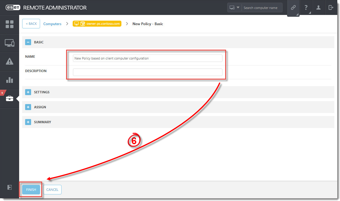 - Type a name and optional description for the policy and click Finish.
