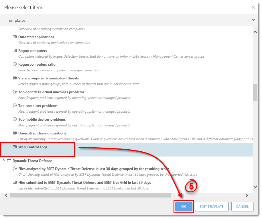 II. Create a new “Web control logs” report template in ESET Security Management Center