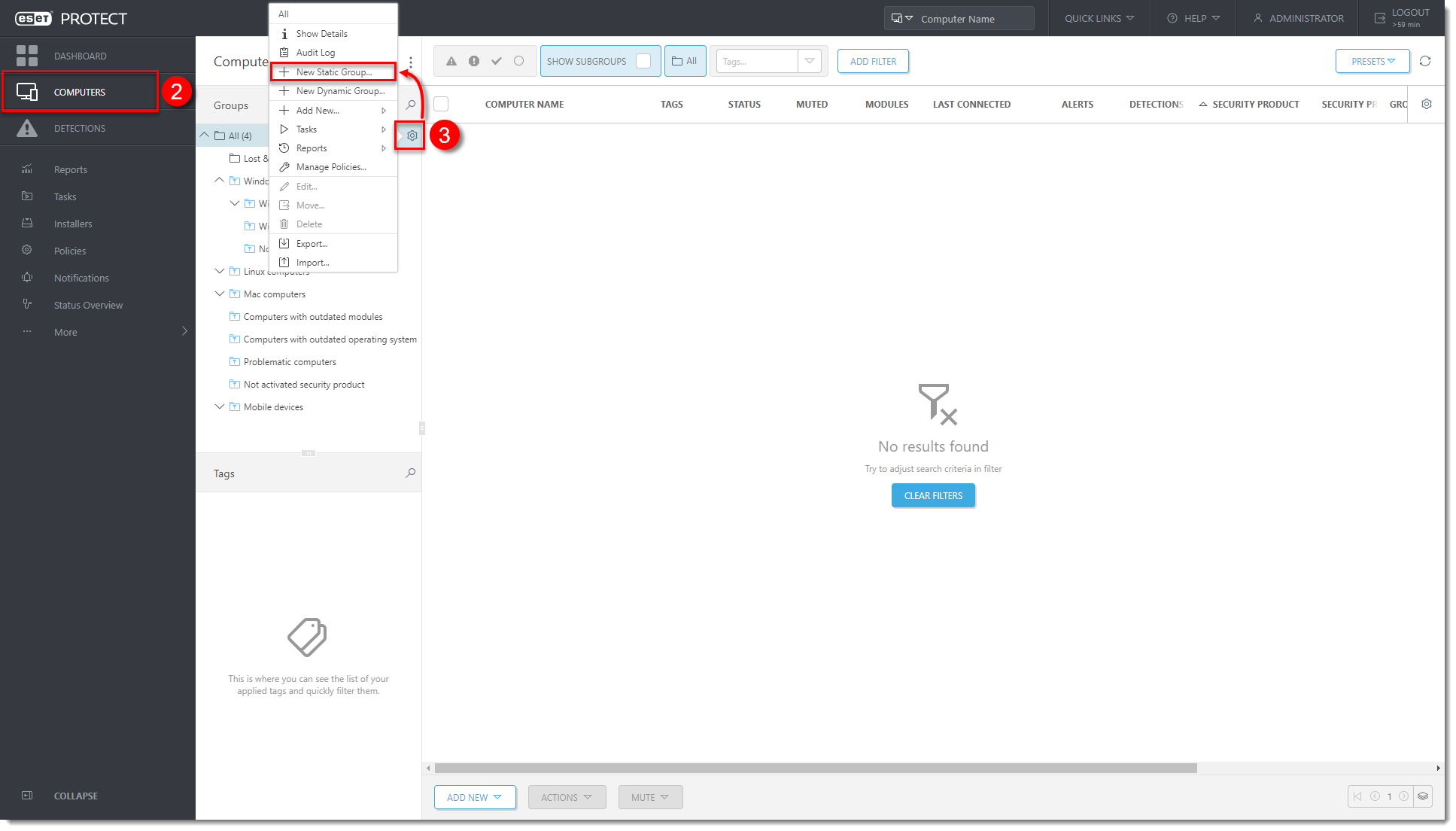 Open the ESET PROTECT Web Console in your web browser and log in.