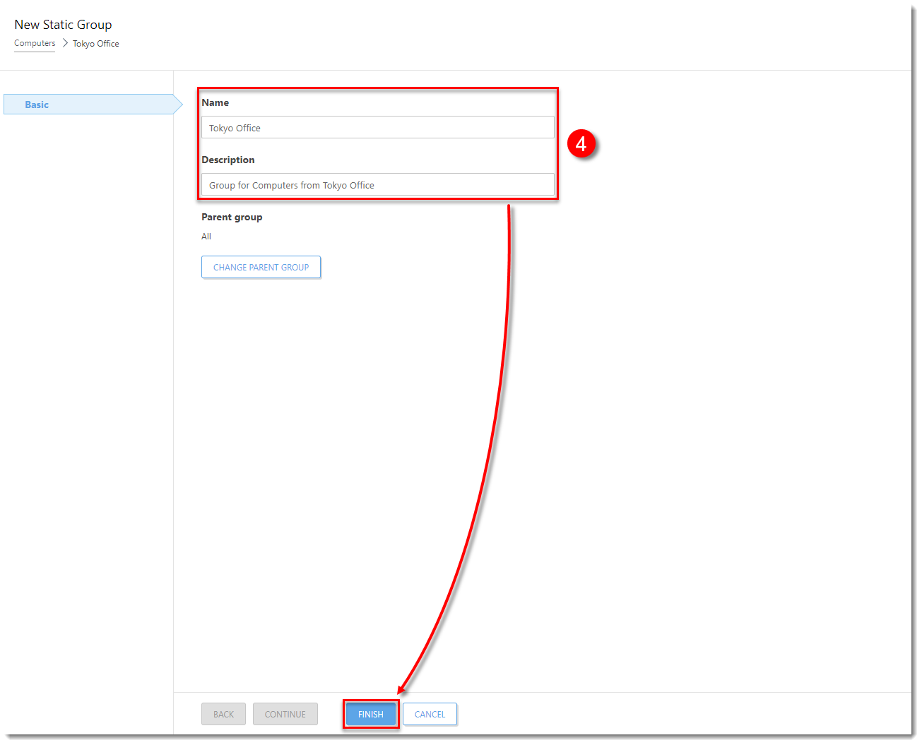 Click the image to view larger in new window - In the Name field, type the name of the static group. Optionally, you can type a description. Click Finish to create the group.